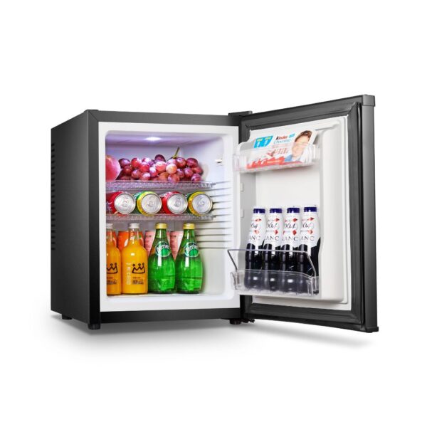 Totalmente silencioso, capacidad de 40 litros, enfría hasta 5°C. Puerta reversible. Disponible en color negro.