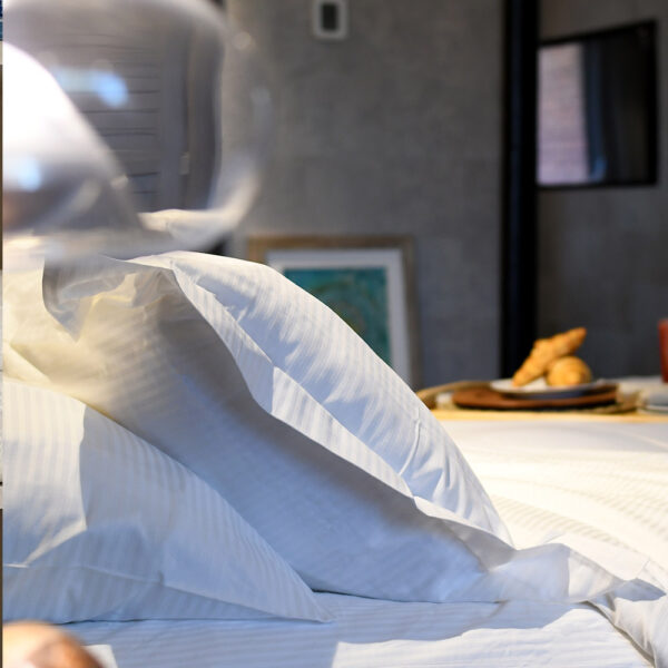 Nuestras sábanas de la Colección Positano de 300 hilos, son blancas y están diseñadas con delgadas líneas de 5 mm ofreciendo suavidad y un diseño original.